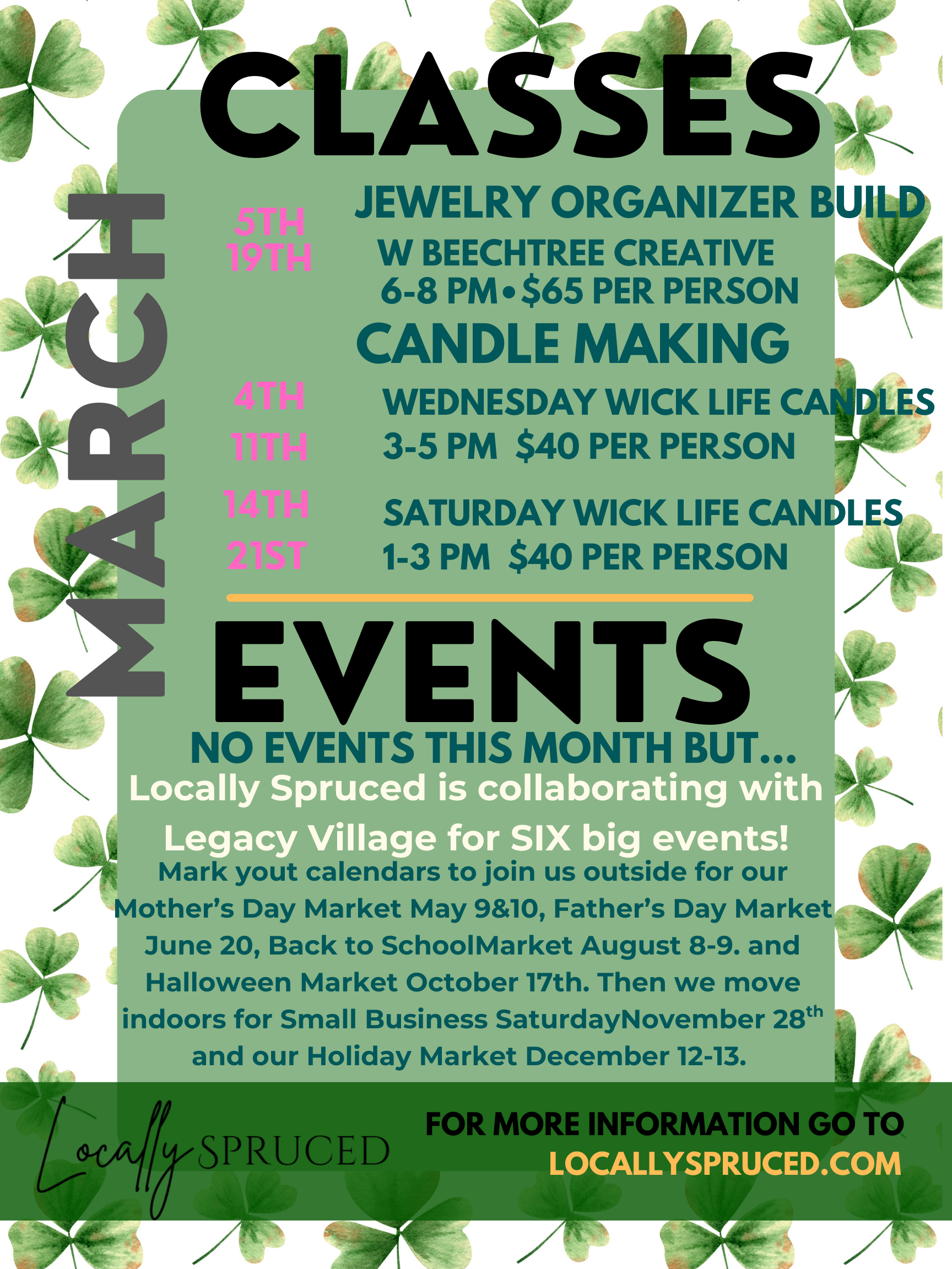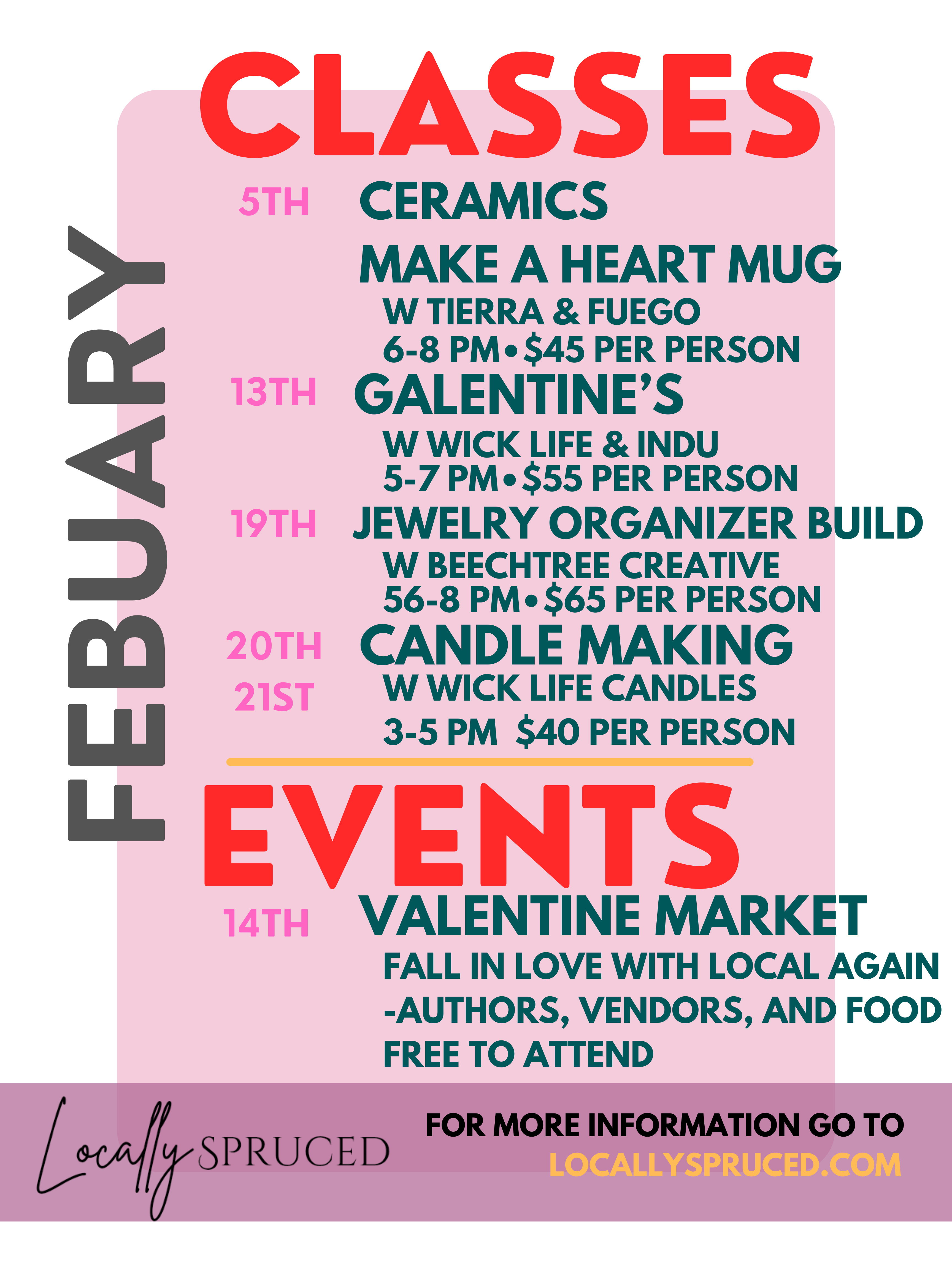 Learn from our talented local business owners and artists. These classes are an experience that you won't want to miss out on.